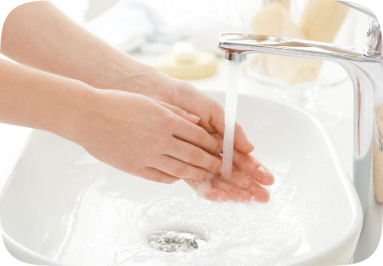 - Промойте кожу чистой проточной водой с мылом
